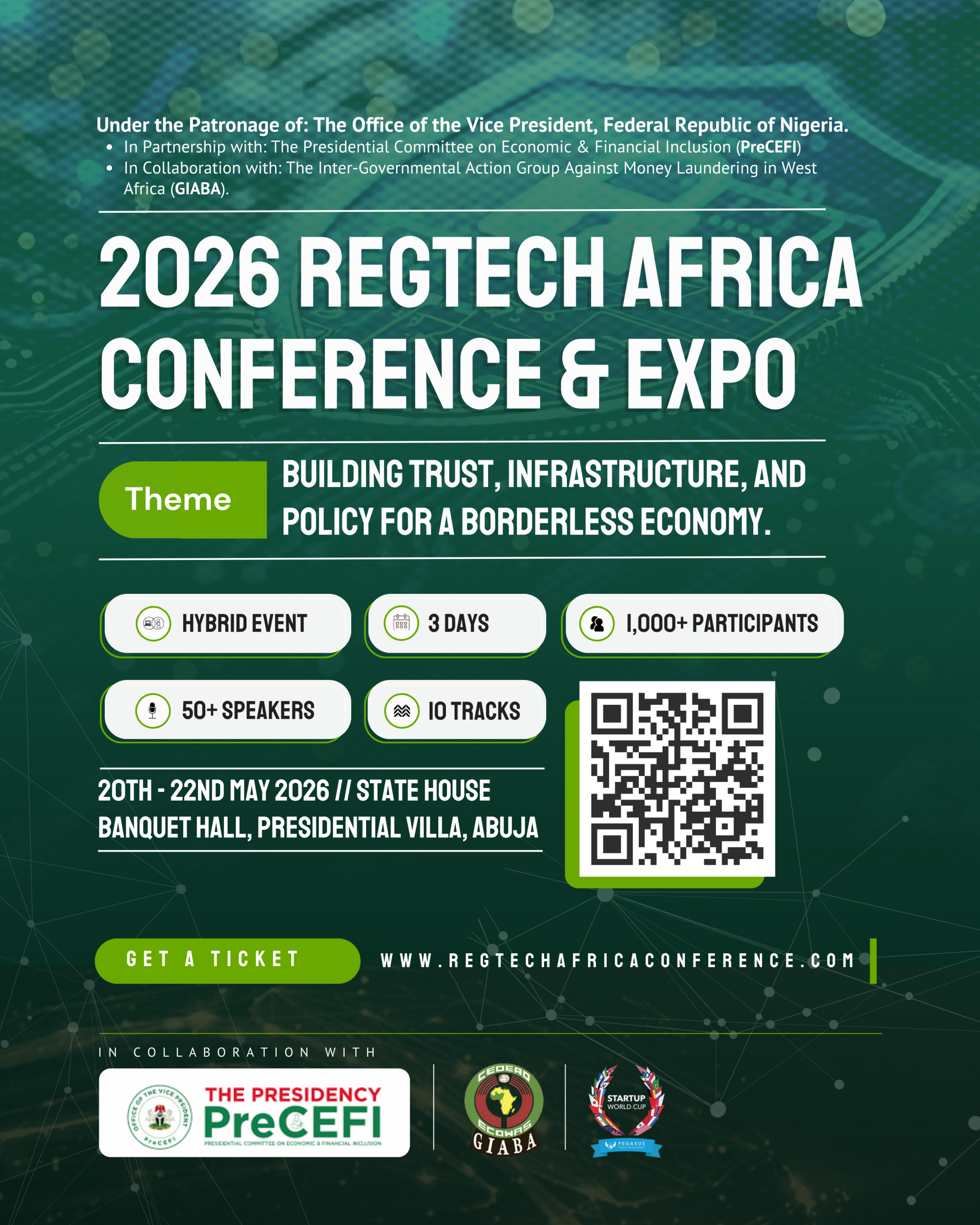 Strategically located in the serene and highly secure district of Asokoro in the Federal Capital Territory, Abuja, the State House Banquet Hall offers an unparalleled environment for high-level engagements. Its sophisticated architecture, refined interiors, and state-of-the-art facilities create the ideal setting for thought leaders, policymakers, technology innovators, and industry stakeholders to connect and shape the future of regulatory technology across the continent.